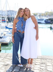 Troisième tonalité pour Chloé Jouannet. La fille d’Alexandra Lamy, qui a renoué avec ses cheveux blonds après un passage par un roux flamboyant et super en vogue, a choisi un presque total look bleu.