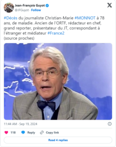 “Hommage à Christian-Marie Monnot qui fut un confrère brillant, élégant, sympathique, espiègle et bien connu du grand public.