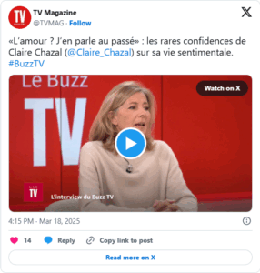 Cependant, cela fait maintenant plusieurs années que Claire Chazal se fait plus discrète sur sa vie privée. Mais après plusieurs longs mois de silence, elle a fini par en parler lors de son passage dans l’émission Buzz TV, diffusée ce mardi 18 mars.