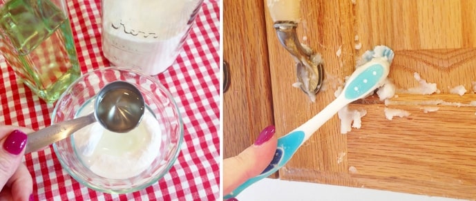 Après la sculpture, bien laver avec un chiffon humide pour enlever l’excès de pâte. Vous pouvez voir dans l’image ci-dessous un avant et après l’utilisation de cette méthode efficace pour éliminer la graisse des armoires de cuisine.