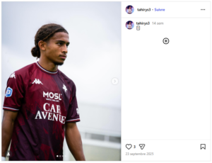 Originaire de Mont-Saint-Martin, à une vingtaine de kilomètres de Metz, Tahirys Dos Santos évoluait comme défenseur latéral gauche et avait débuté sa carrière professionnelle en mars 2025,