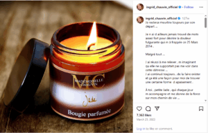 Avec sa marque Mademoiselle Chauvin, elle a en effet sorti une gamme de bougies portant le prénom de sa fille. “Avec ses notes olfactives inspirées de mes souvenirs de nous et de cet amour inconditionnel qui nous lie pour la vie.