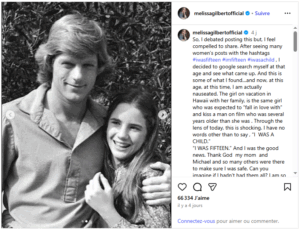 et embrasser un homme plus âgé devant les caméras. D’un point de vue actuel, c’est choquant. Je n’ai pas d’autres mots pour dire : ‘J’ÉTAIS UNE ENFANT.’ ‘J’AVAIS QUINZE ANS.’”