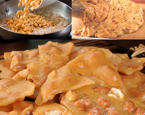 Si vous aimez votre cassant suintant au goût de noix grillées, vous devez ajouter les cacahuètes au mélange de sucre lorsqu’il devient brun clair. Faites cuire le mélange en remuant constamment jusqu’à ce que le mélange chaud et cassant devienne brun brillant et sente fortement les noix grillées.