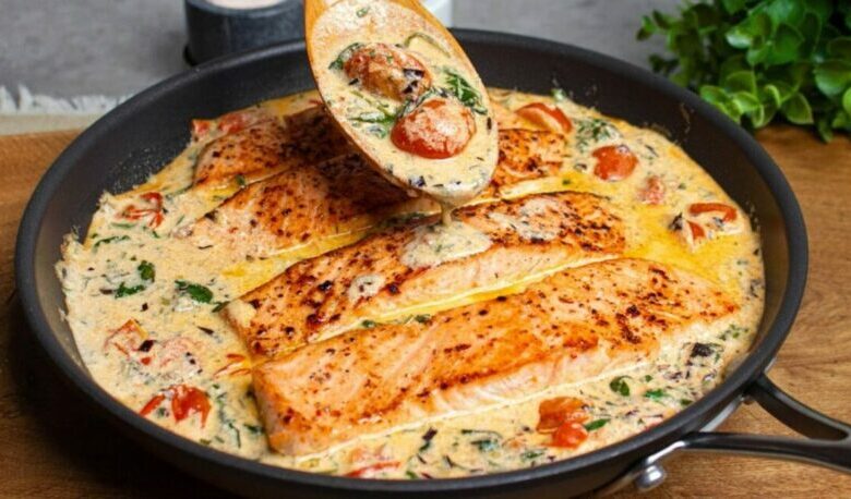 Bienvenue dans l’univers de la cuisine méditerranéenne, où les saveurs ensoleillées de l’Italie se marient harmonieusement avec la douceur du saumon pour créer un festin exquis. Aujourd’hui, nous vous invitons à découvrir une recette qui incarne la quintessence de cette fusion culinaire : le Saumon toscan crémeux à l’ail avec épinards et tomates séchées.