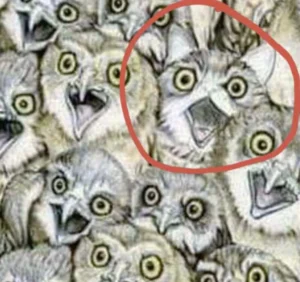 le chat est camouflé parmi les hiboux grâce à des similitudes de forme et de couleur, ce qui rend sa détection bien plus difficile qu’il n’y paraît.