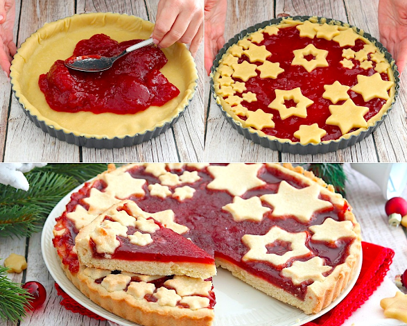 Une fois la décoration terminée , vous pouvez cuire la tarte dans un four statique préchauffé à 180°C pendant 25 minutes, jusqu’à ce que la pâte prenne une belle couleur dorée. Sortir du four et laisser refroidir complètement pour que la couche de confiture se dépose bien.