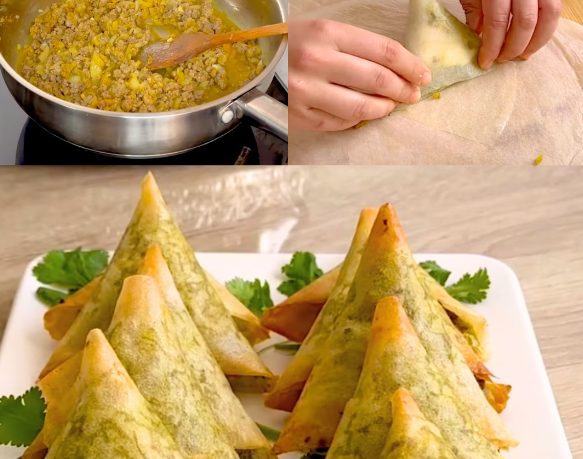 7. Fermez maintenant pour façonner les triangles et scellez avec un peu de blanc d’œuf.