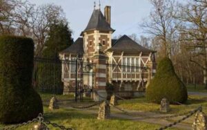 sereinement avec Mireille Darc et leurs 14 chiens. L’endroit, nid de verdure, recèle un étang, une plage artificielle,