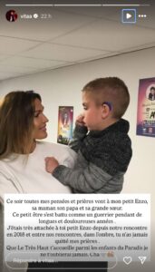 “Ce soir toutes mes pensées et prières vont à mon petit Enzo, sa maman, son papa et sa grande sœur. Ce petit être s’est battu comme un guerrier pendant de longues et douloureuses années.